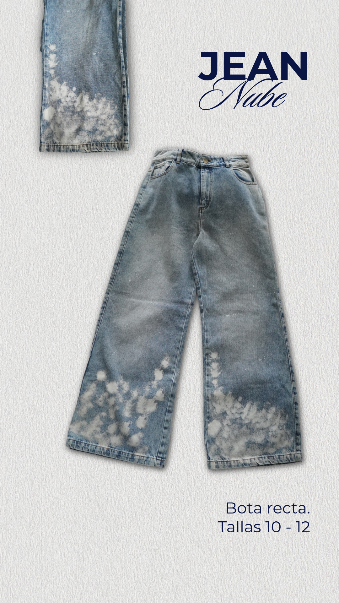 Jean con teñido de nube, diseño único. Disponible Tallas 10 y 12